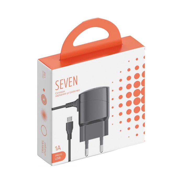 Зарядное устройство SEVEN, micro USB 1000 mA, черное