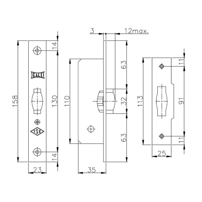 Защелка врезная KALE ролик 155/B, 35 мм, цвет латунь