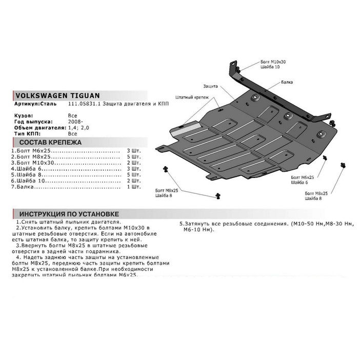 Не секрет, что машина давно уже перестала восприниматься как просто средство передвижения, и водители покупают всё лучшее для своих железных коней. Защита картера и КПП АвтоБРОНЯ для Volkswagen Tiguan (V - кроме 1.4 150л.с.) 2008-2017, крепеж в комплекте, сталь, 2 мм, 111.05831.1 — идеальный выбор, если вы ставите целью и улучшение технических характеристик, и поддержание внешнего вида автомобиля.