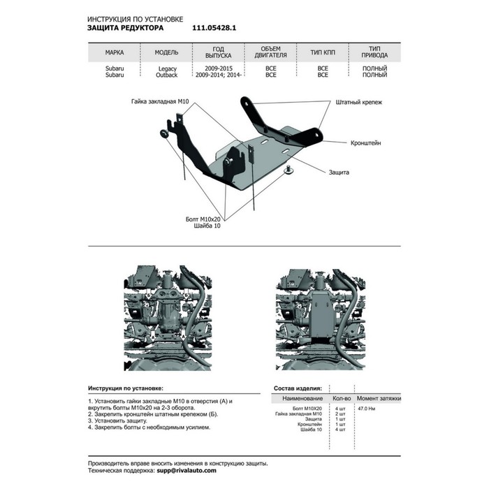 Не секрет, что машина давно уже перестала восприниматься как просто средство передвижения, и водители покупают всё лучшее для своих железных коней. Защита редуктора АвтоБРОНЯ для Subaru Legacy 2010-2015, крепеж в комплекте, сталь, 2 мм, 111.05428.1 — идеальный выбор, если вы ставите целью и улучшение технических характеристик, и поддержание внешнего вида автомобиля.