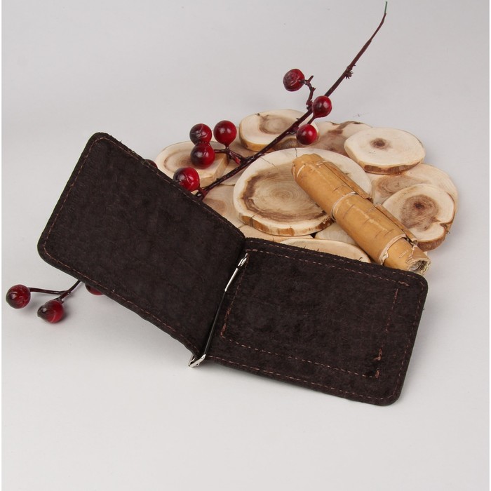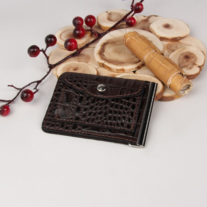 Зажим для денег, с металлическим держателем, отдел для монет, кайман/скат, цвет коричневый