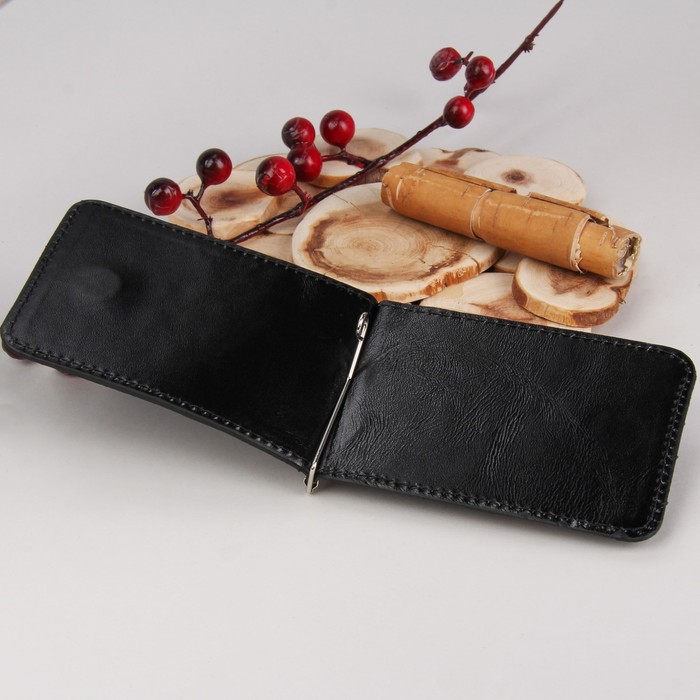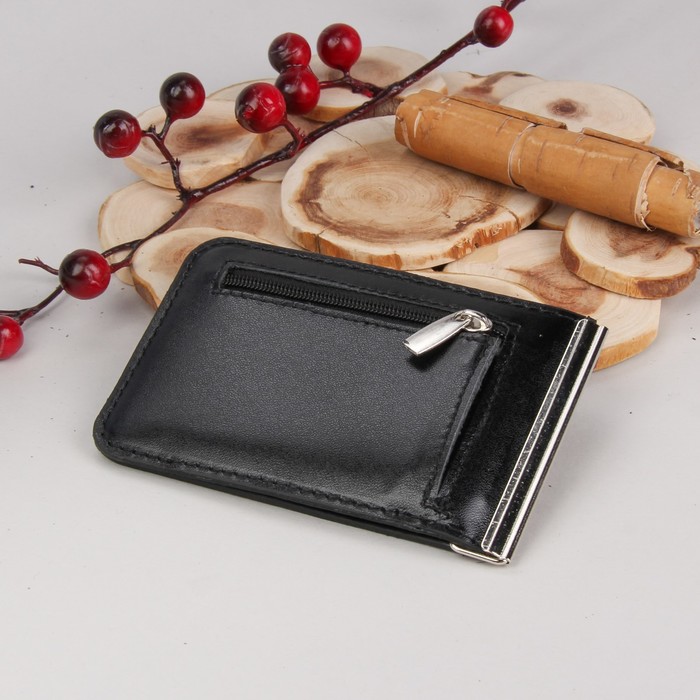 Зажим для денег, с металлическим держателем, отдел для монет, шик, цвет чёрный