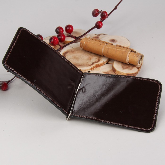Зажим для денег, с металлическим держателем, отдел для монет, шик, цвет коричневый