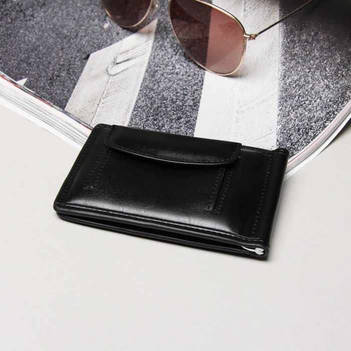 Зажим для купюр, отдел, для монет, для карт, цвет чёрный
