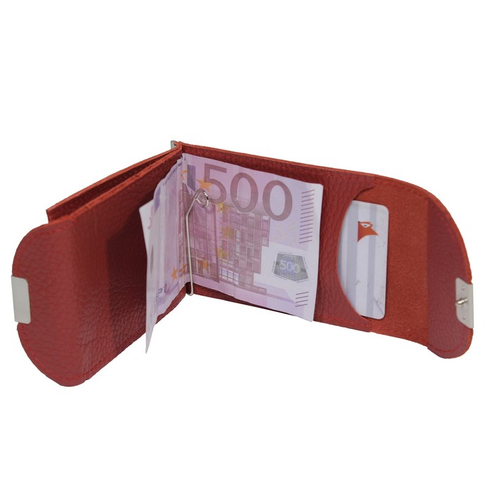 Зажим для купюр+монетница+карточки, кнопка, н/к, цвет красный флотер зк300-113