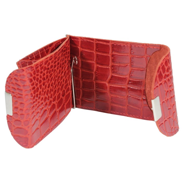 Зажим для купюр+монетница+карточки, кнопка, н/к, цвет красный крокодил зк300-203