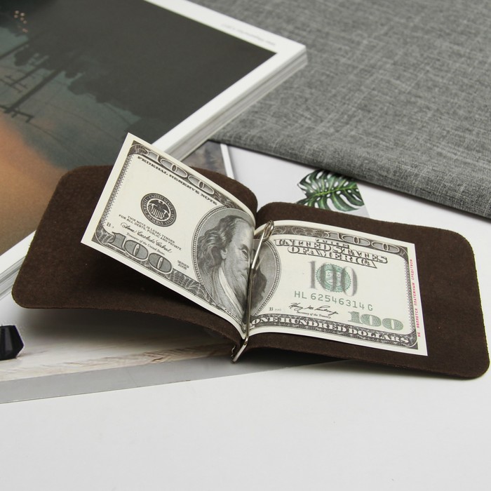 Зажим для купюр, с металлическим держателем, доллар, цвет коричневый