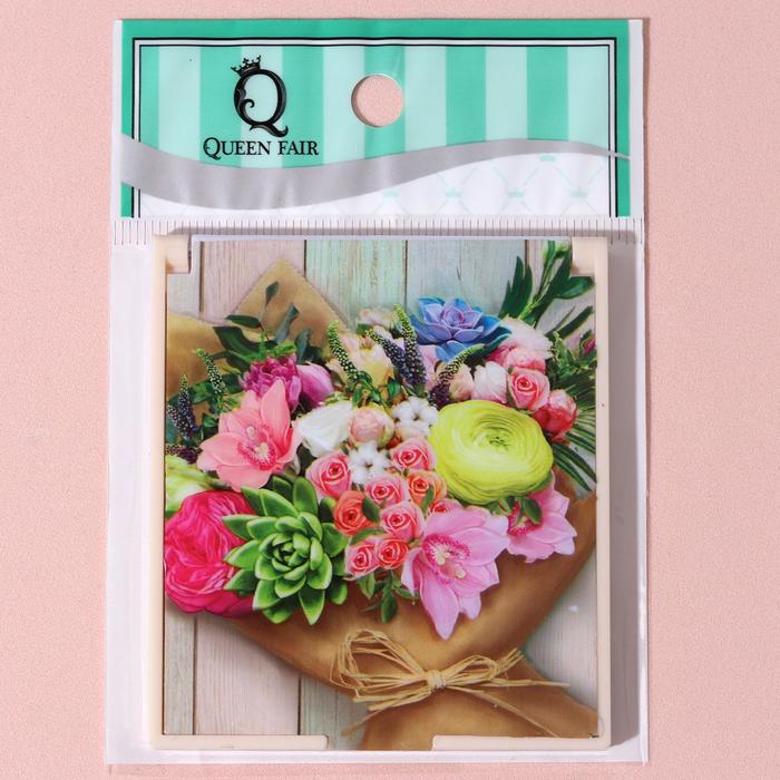 Зеркало складное "Букет", квадратное, одностороннее, без увеличения