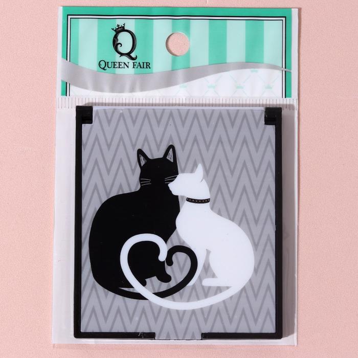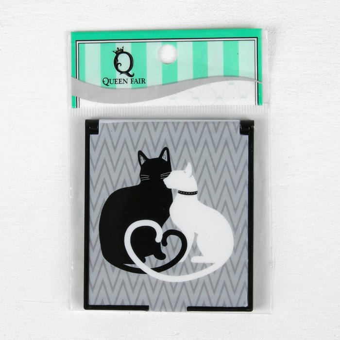Зеркало складное "Две кошки", квадратное, одностороннее, без увеличения