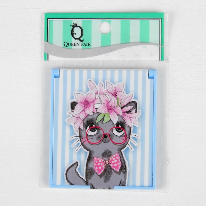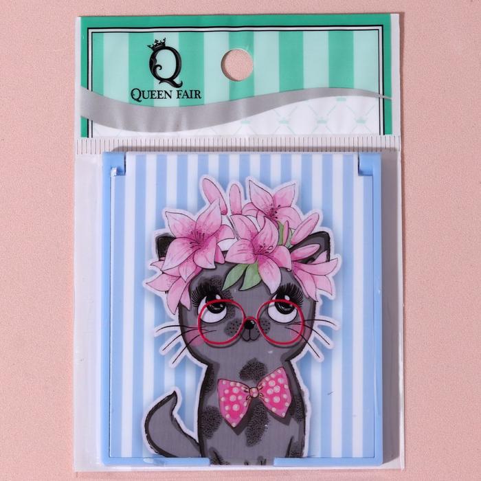 Зеркало складное "Кошечка в очках", квадратное, одностороннее, без увеличения