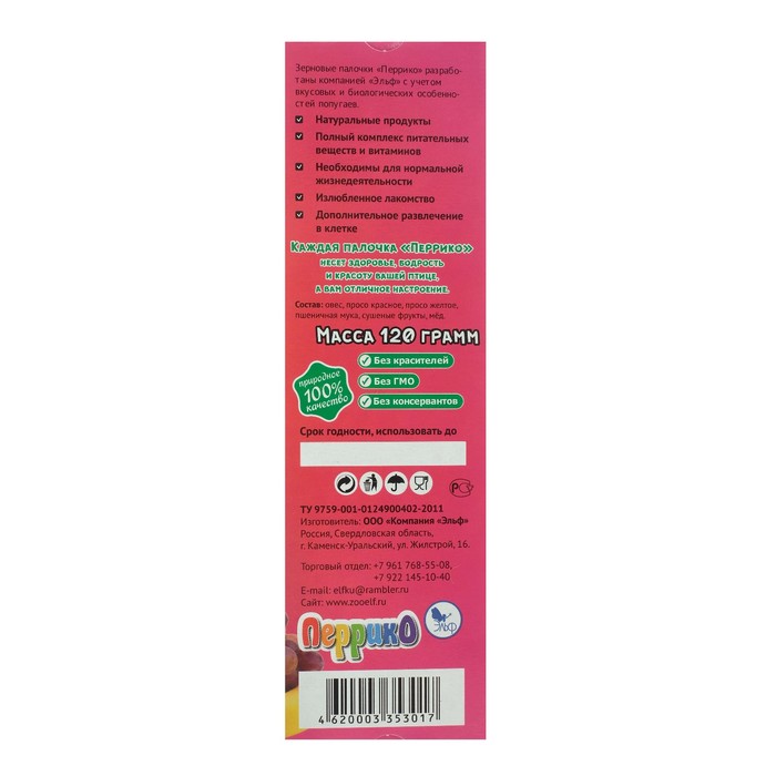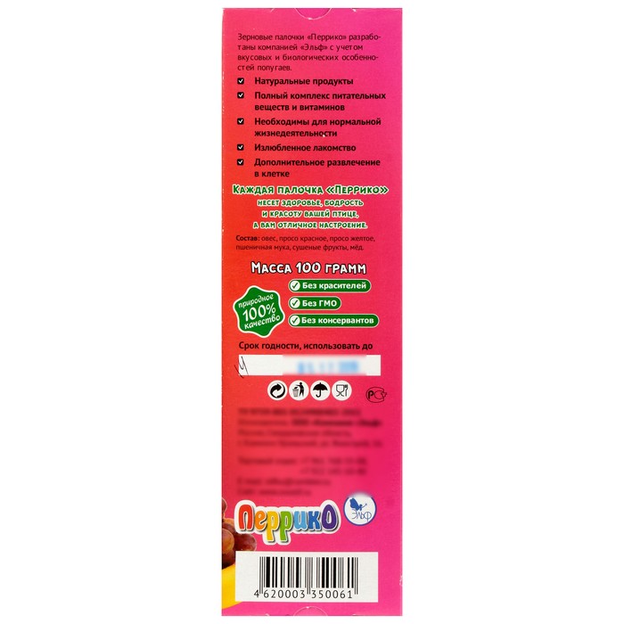 Зерновые палочки "Перрико.Фруктовый коктейль" для попугаев, набор 2 шт, коробочка
