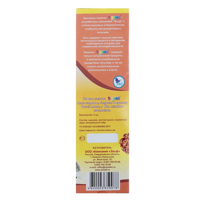 Зерновые палочки "С мёдом" для попугаев, набор 2 шт, коробочка