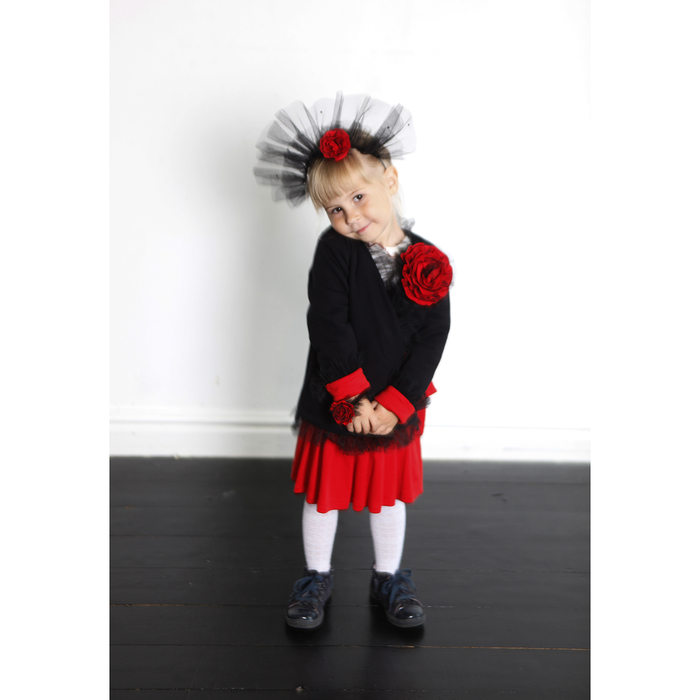 Жакет-кимано с цветком для девочки, рост 110 см, цвет чёрный/красный КЛ-8
