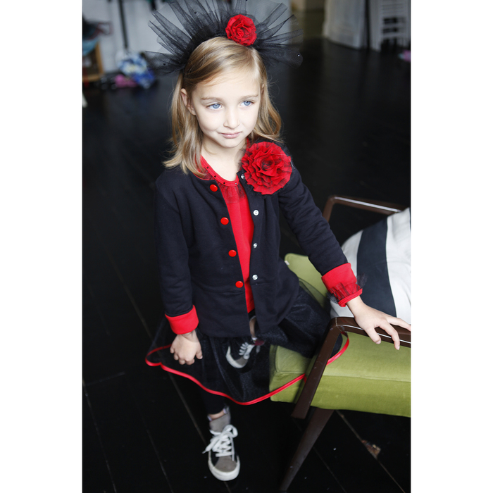 Жакет с цветком для девочки, рост 104 см, цвет чёрный, красный КЛ-17