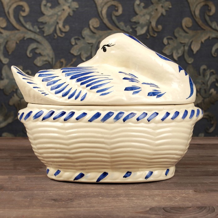 Жаровня 3 л "Лебедь", гжель