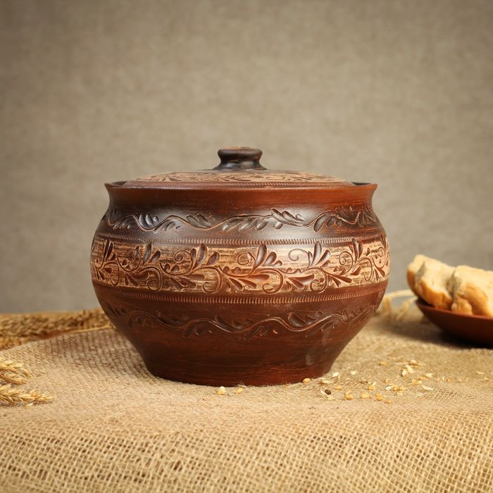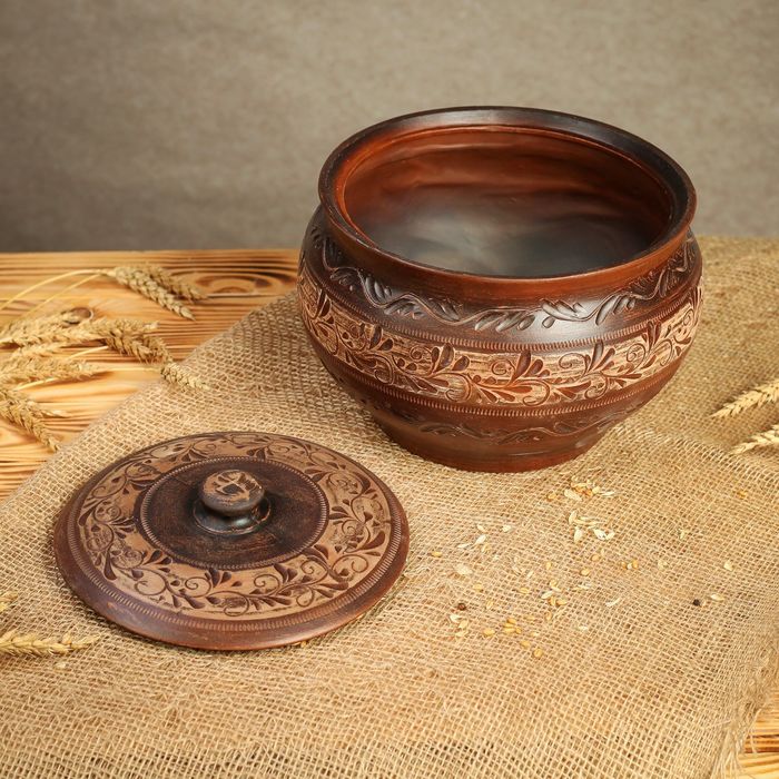Жаровня — это посуда для приготовления пищи в духовке. Подходит для тушения или длительного томления овощей, мяса, дичи. Она сделана из красной глины и имеет продуманную форму, что обеспечивает теплообмен между жаровней и блюдом, а также помогает сохранить полезные свойства продуктов.