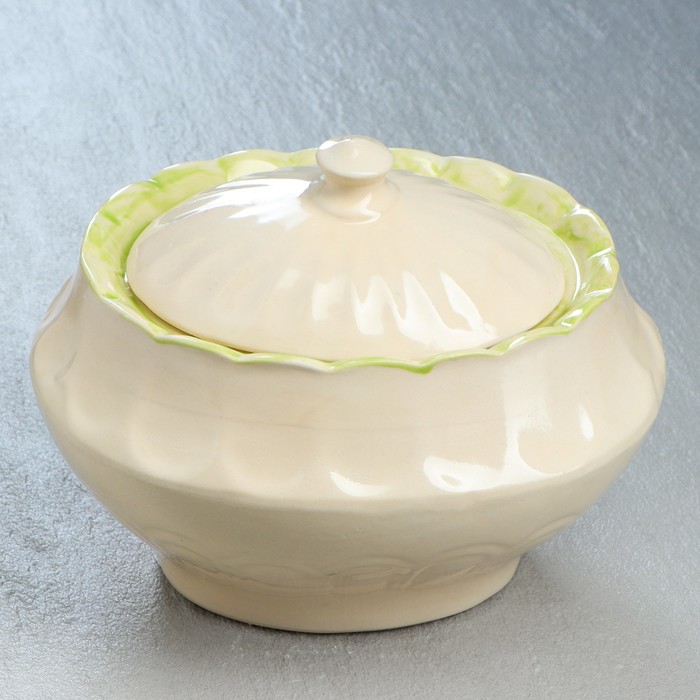 Посуда выполнена в традиционном русском стиле, поэтому сможет украсить кухню и обеденный стол. А ещё у неё есть крышечка, благодаря которой вы сможете найти супнице массу других применений: от ёмкости для хранения до необычного украшения вашего дома.