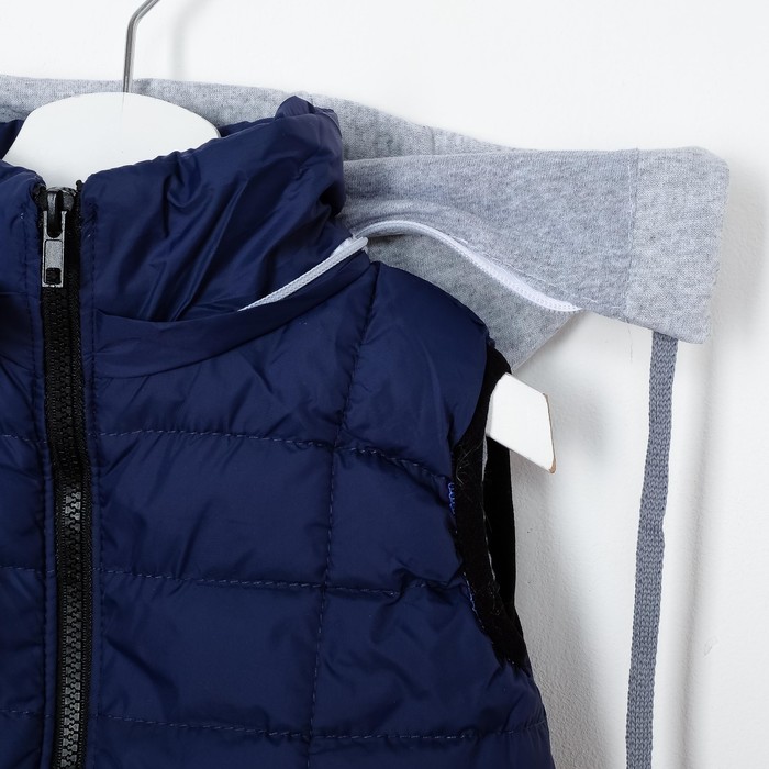 Жилет для мальчика с трикотажным капюшоном, синий, рост 122-128 (32)
