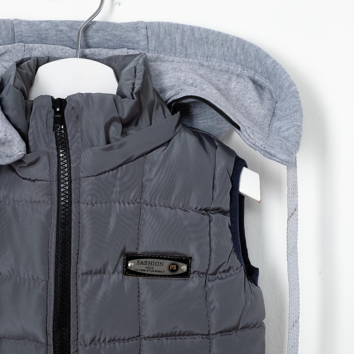 Жилет для мальчика с трикотажным капюшоном, т-серый, рост 104-110 (26)