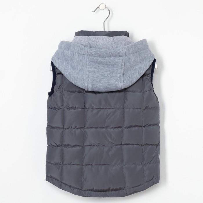 Жилет для мальчика с трикотажным капюшоном, т-серый, рост 116-122 (30)