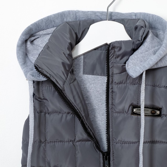 Жилет для мальчика с трикотажным капюшоном, т-серый, рост 122-128 (32)