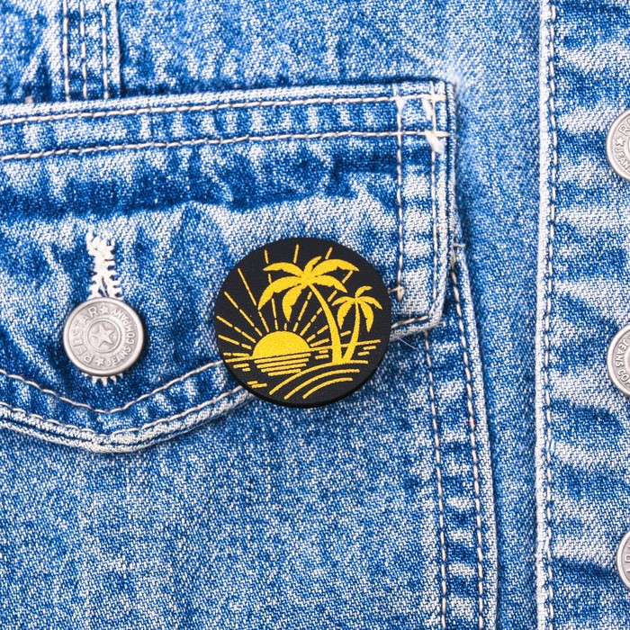 Ни один стиляга не будет выглядеть современно без искусно подобранных украшений, которые завершат его образ! Бижутерия — это современная недорогая альтернатива изделиям из золота и прочих драгоценных металлов. Значок экокожа "Пляж" — это то, что добавит вам шарма!