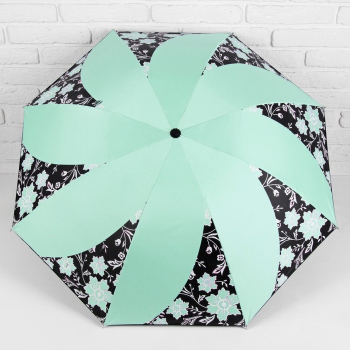 Зонт механический "Цветочный орнамент", R=55см, цвет мятный/чёрный