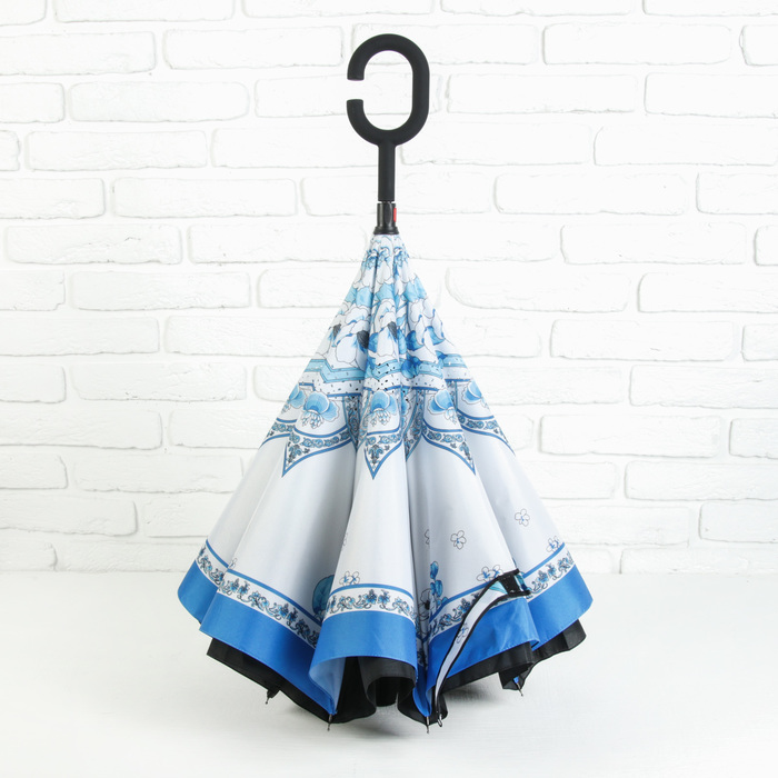Зонт наоборот "Голубой узор", механический, R=58см, цвет чёрный