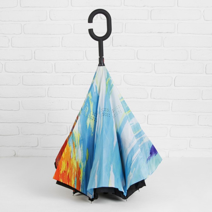 Зонт наоборот "Закат", механический, R=53см, цвет голубой/чёрный