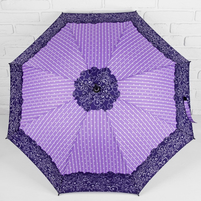 Зонт-трость "Завитушки", полуавтоматический, R=52см, цвет фиолетовый/чёрный
